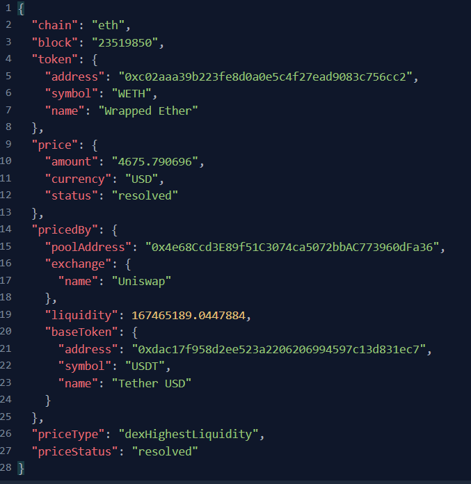 Our API finds the most reliable market data across blockchains and delivers token prices in USD — instantly. Whether on Ethereum, Solana, or other EVM chains, we ensure your app always shows the right numbers.